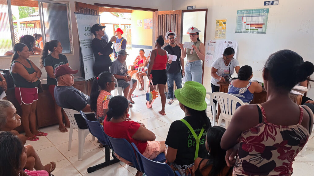 Neste mês de fevereiro às comunidades São Pedro, Curi e Mentae e as aldeias São Pedro do Muruci e Esperança, no Médio Arapiuns, receberam a 1ª Jornada de Saúde e Arte-Educação realizada pelo Projeto Saúde e Alegria, por meio do Programa Saúde na Floresta em parceria com as comunidades locais e Secretaria Municipal de Saúde (Semsa) neste ano de 2025.
