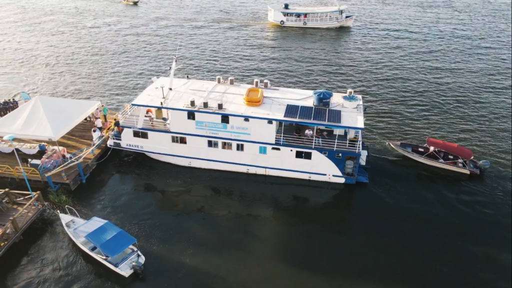 A situação começou a melhorar em 2006, quando o Projeto Saúde e Alegria se organizou para colocar nas águas do Rio Tapajós o primeiro barco hospital, o Abaré – nome escolhido pelas comunidades, que em tupi significa “amigo cuidador”. Contou com o suporte da ONG holandesa Terre Des Hommes (TDH), que financiou sua construção, repassando-o via comodato ao PSA, além de apoiar as operações nos anos iniciais.