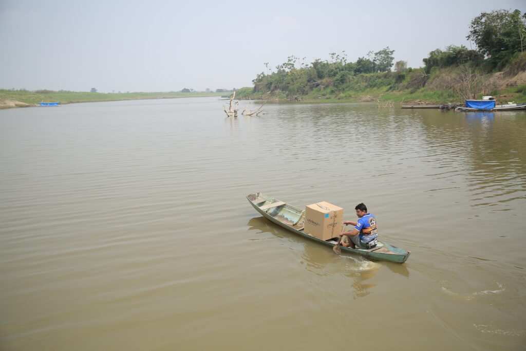 A área também sofre influência da maré, contam os pescadores. Alguns canais possíveis de navegar em parte do dia, fecham, o que impõe novas mudanças no roteiro da viagem, dificultando a previsão do horário exato de chegada nas comunidades já mobilizadas e sem acesso regular a sinal de telefonia e internet, “nesse período em que a estiagem está sendo imensa tem uma dificuldade a mais de fazer chegar nas comunidades”, ressalta Ana.
