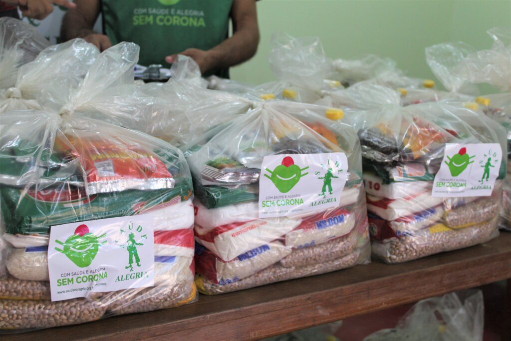 Para amenizar as dificuldades, a campanha #ComSaudeeAlegriaSemCorona está apoiando as famílias do município de Juruti com cestas básicas e frascos de álcool em gel para cinquenta famílias.