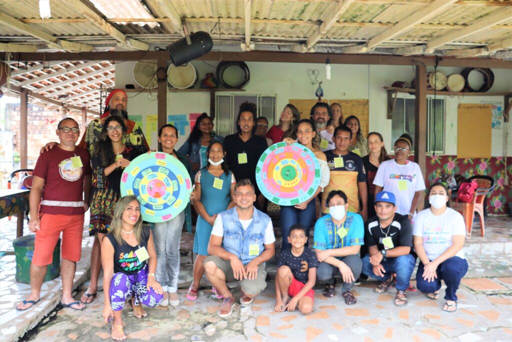 A Rede Águas do Cuidar é uma das sete organizações integrantes da Escola de Redes Comunitárias da Amazônia, que no período de 22 a 23 de abril, recebeu as ações de campo do projeto. Entre veteranos e jovens lideranças, bem como os três alunos da Escola se deslocaram de seus territórios para participar da oficina com o objetivo de refletir e dialogar sobre o território, mapear fortalezas, desafios e sonhos, assim como desenhar estratégias de comunicação comunitária da região.