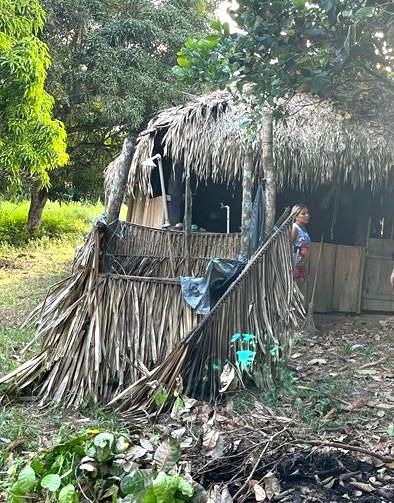 “Era de palha né. Dentro tinha só um chuveiro” – Elciene Santos, Aldeia Bragança.
