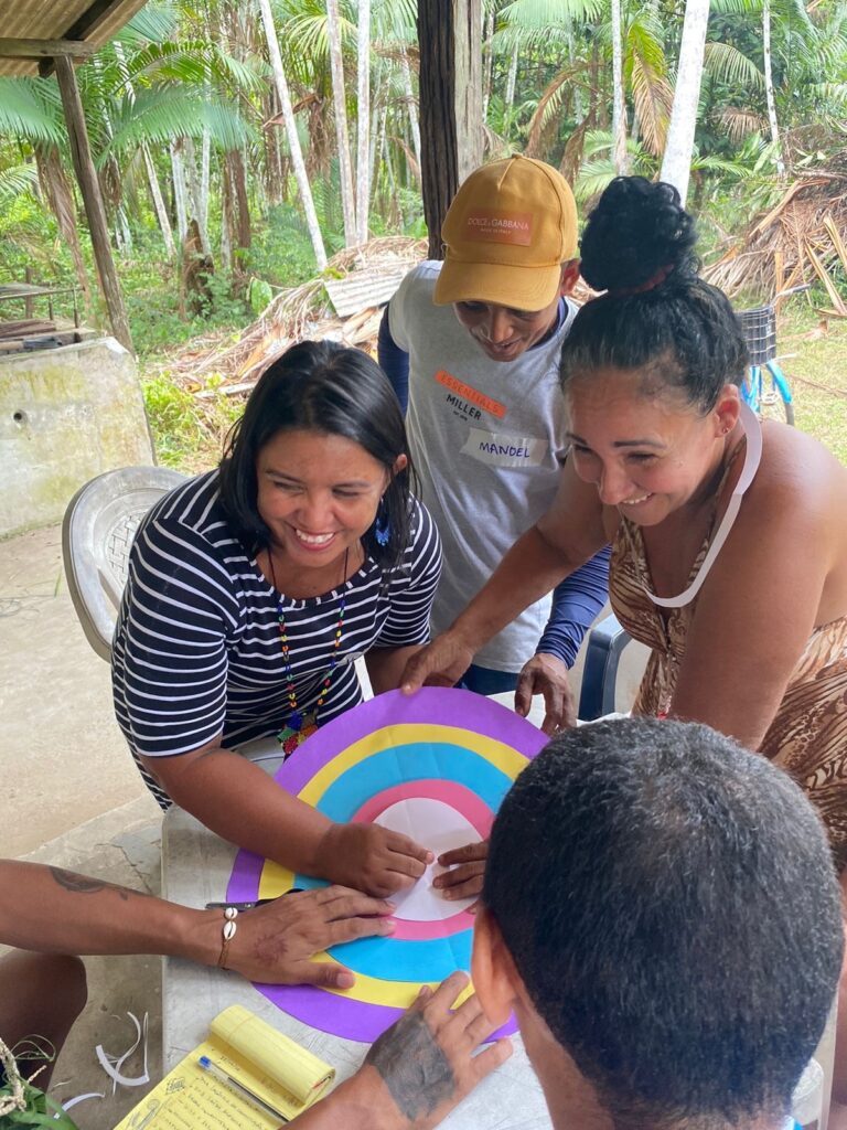“Este encontro presencial ele seguiu em duas atividades: a primeira uma ótima de mapeamento colaborativo e lúdico pela mandala dos saberes, em que eles apresentam seu próprio território; a segunda foi uma visita técnica com essas lideranças para visualização de onde será instalada uma antena de rede comunitária e de como essa rede pode potencializar os empreendimentos socioprodutivos” disse a pesquisadora do PSA , Adriane Gama.