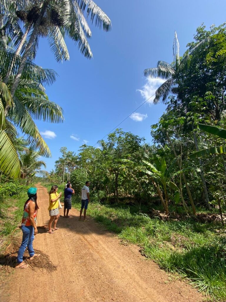 Na segunda parte da visita, acompanhada de universitários, as pesquisadoras observaram de perto as principais atividades comunitárias e o desafio na luta por manter a floresta em pé. Analisaram o sistema complexo e rico da agroecologia e do sistema padronizado da monocultura de Dendê, que ainda persiste em desenvolver as atividades no local. Dessa forma, entenderam a importância do projeto de Rede Comunitária para fortalecer os empreendimentos sustentáveis no território.