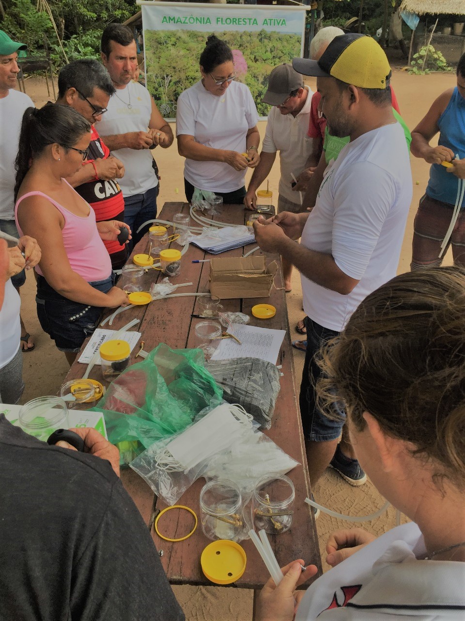 Nesta etapa a equipe do Programa Floresta Ativa Tapajós desembarcou na região do Lago Grande para capacitar os meliponicultores para a produção de mel e manejo de abelhas nativas.
