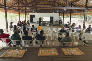 Rodrigo Lima, técnico do Conselho Nacional das Populações Extrativistas (CNS), reforça como a formação dialoga com realidades de difícil acesso, onde sair para fazer um curso é um obstáculo: “Isso aqui é de total importância para esses facilitadores. Esse curso aqui, essa formação é essencial para eles como comunitários, principalmente pela área da segurança e pelo difícil acesso”.