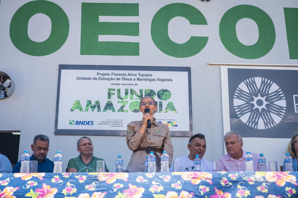 A inauguração do Ecocentro da Sociobioeconomia foi realizada na manhã desta sexta (19) em Santarém. O evento contou com a participação da Ministra do Meio Ambiente e Mudança do Clima, Marina Silva que visitou o espaço que vai ser utilizado por produtores e empreendedores para o fortalecimento da sociobioeconomia na região. Além de Marina, estiveram presentes a Ministra de Desenvolvimento Econômico e Cooperação da Alemanha, Svenja Schulze, e a Ministra de Desenvolvimento Internacional da Noruega, Anne Beathe Tvinnereim, países que são apoiadores do Fundo Amazônia, gerido pelo BNDES, principal financiador do projeto. Autoridades locais, comunidades, parceiros e apoiadores fizeram parte do momento.