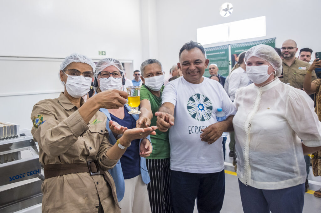 A comitiva visitou espaços que formam o complexo do Ecocentro, onde antes funcionava uma antiga usina de processamento de borracha, que foi reformada e estruturada como uma indústria, com equipamentos e tecnologia de ponta que vão auxiliar no envase e embalagem do mel de abelhas nativas, conservação de polpas de frutas, extração de óleos vegetais e essenciais, destilação de copaíba e outros insumos.