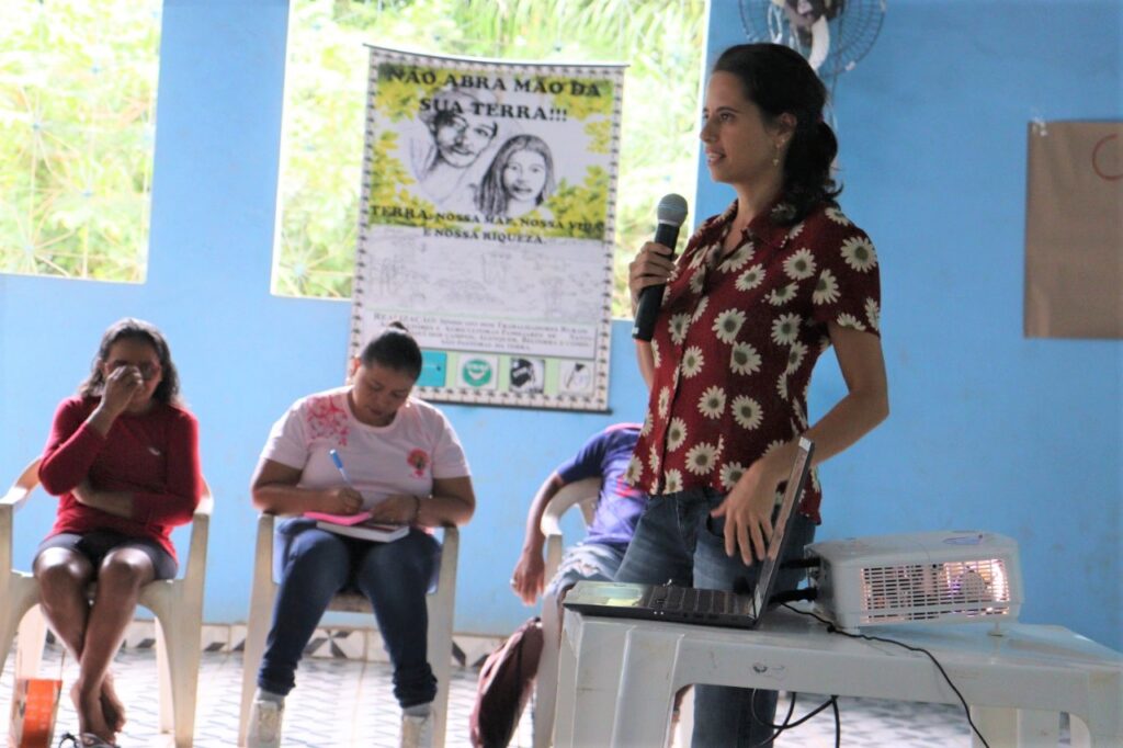 Laura Lobato, engenheira Florestal e Mestranda em Ciências Ambientais pela Universidade Federal do Oeste do Pará (UFOPA), integra a equipe de campo do Programa Floresta Ativa. Na ponta, junto aos moradores de áreas da Floresta Nacional do Tapajós e da Reserva Extrativista Tapajós Arapiuns, é apoiar no fortalecimento das atividades em quintais produtivos, com plantios, roçados, vieiros e coletas de frutos de produtos florestais não madeireiros. “O engenheiro florestal é a pessoa capaz de planejar, estruturar projetos, pensando em como gerir a floresta da melhor forma. A atuação do PSA tem sido alinhado à conservação devido aos projetos estarem voltados à proteção e conservação da biodiversidade. O Saúde e Alegria tem pensado muito no reflorestamento no sentido dos quintais agroflorestais. Tem sido pensados viveiros florestais nas comunidades para abastecer esses sistemas das famílias. Trazendo essas alternativas, as famílias vão se desviar do caminho mais fácil que seria  extrair madeira” – destaca.