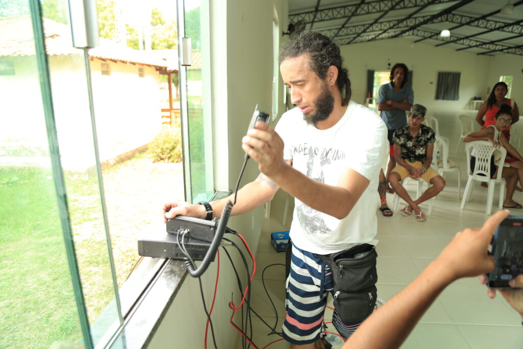 Nós vamos conhecer e montar duas estações de rádio para se comunicarem e mostrar essa alternativa. É um programa chamado Hermes, onde são feitas conexões via rádio amador. Durante muito tempo foi a única comunicação e ainda é em várias regiões da Amazônia. O que foi feito é fazer com que com o rádio amador, você consiga transferir para internet e poder ter acesso ao whatsapp e o correio eletrônico. É um projeto experimental, já está funcionando no Xingu e no Acre, e nós vamos fazer com a Rizhomática, que é a empresa que desenvolveu essa aplicação, toda a experimentação”, explica o coordenador da Escola, Paulo Lima.