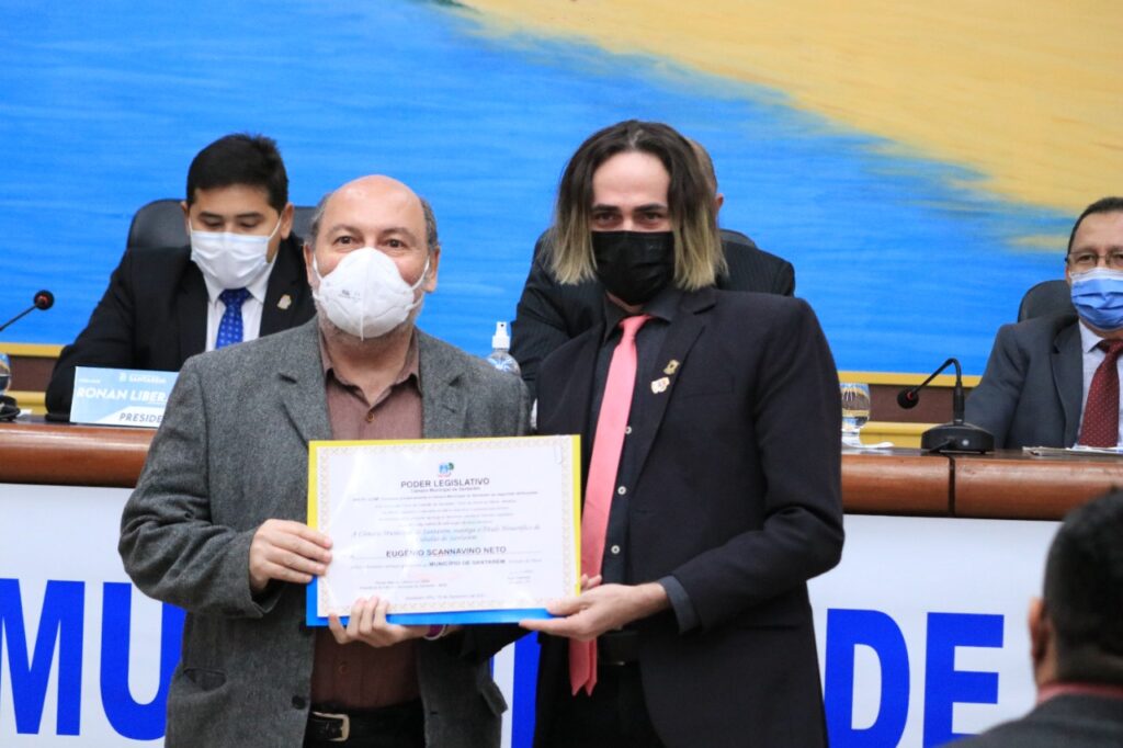 Paulo Lima, um dos coordenadores do PSA, representou Scannavino na sessão e recebeu o título das mãos da vereadora Biga Kalahare que indicou o médico à homenagem, realizando a proposição à casa legislativa para a indicação. Para Lima, o título é também um reconhecimento à história do PSA que se mescla à do fundador. A entidade trabalha atualmente com 150 comunidades da floresta, atingindo mais de 30 mil pessoas com projetos de saúde e saneamento básico, ordenamento territorial, fundiário e ambiental, organização social, cidadania e direitos humanos, produção agroextrativista e geração de renda, energias renováveis, educação, cultura, comunicação e inclusão digital. “Representamos o Dr Eugênio nesta importante homenagem e ressaltamos nossa gratidão à sociedade que reconhece a relevância das ações realizadas por ele ao longo de todos esses anos em Santarém” – disse.