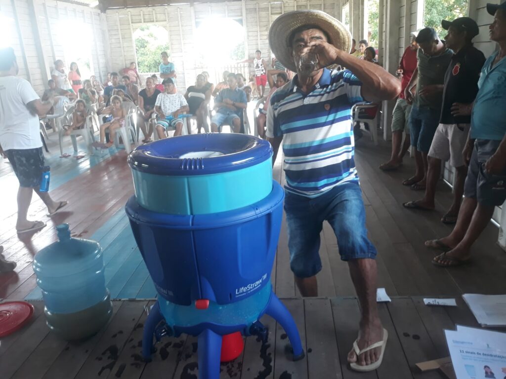 Durante as distribuições, são também ministradas as oficinas de higiene e manutenção dos filtros, para autogestão comunitária. “Chegou pra ajudar bastante a situação da água na nossa comunidade. Quando chega a seca a gente sofre muito com isso. Chegou num momento bom, um filtro muito bonito. Nós observamos todo o processo, a apresentação. Foi excelente pra comunidade”, Maria Isabel Oliveira, Escola São Raimundo, Centro de Marimarituba.