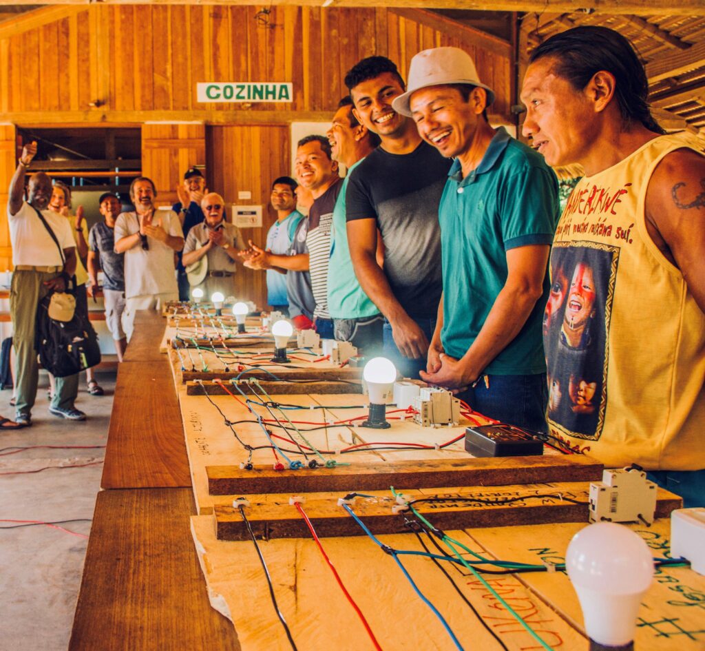 ELETRICISTAS DO SOL: jovens comunitários treinados como agentes locais multiplicadores para instalação e manutenção de sistemas fotovoltaicos. Foto: arquivo PSA.