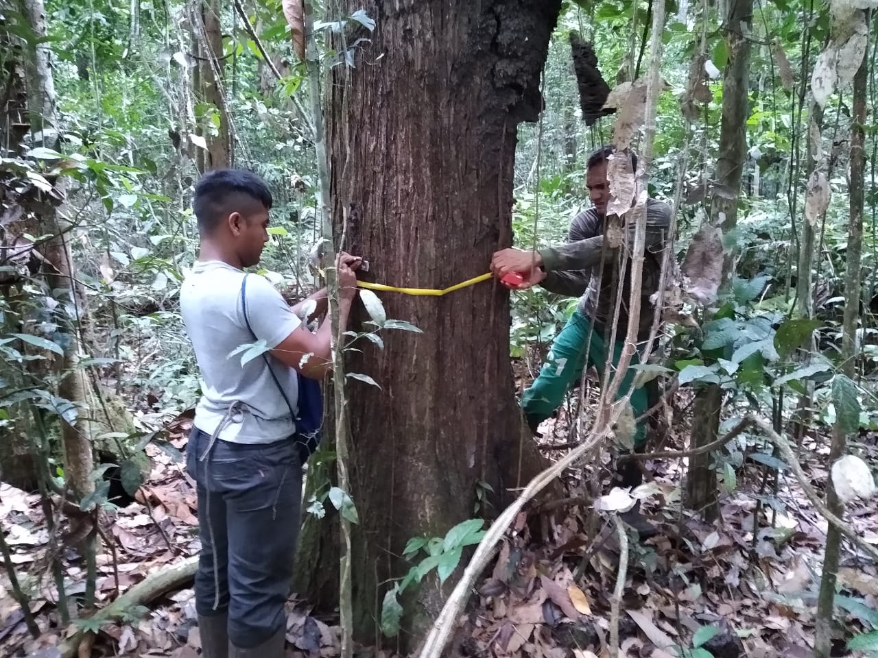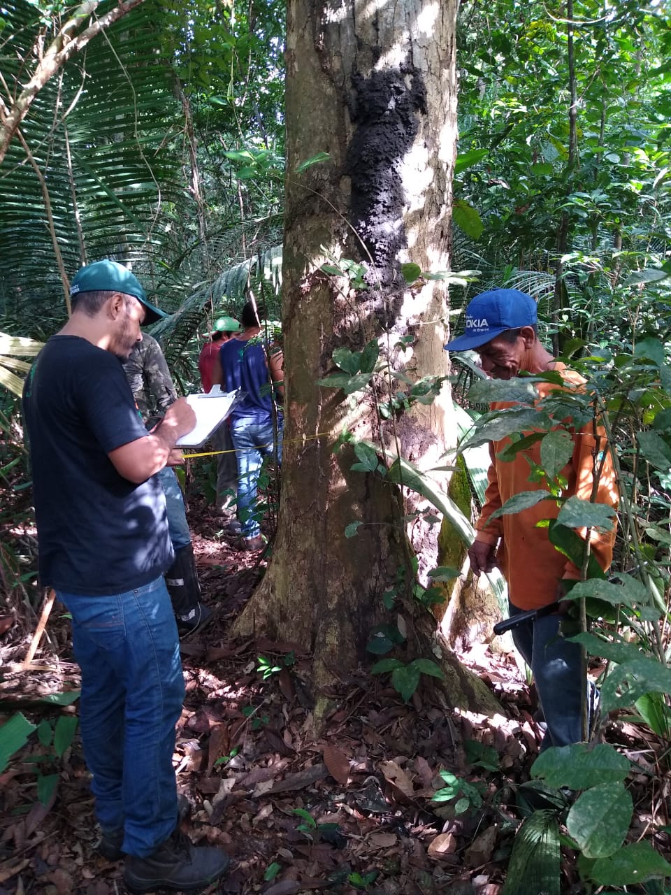 Técnicos do Programa Floresta Ativa do PSA estiveram em campo no mês de dezembro para realizar o inventário em três áreas polos da Flona: Jaguarari, Nazaré e Prainha. Foram coletadas amostras em espaços de 50x200m. O inventário florestal é a principal ferramenta para conhecer o estoque de madeira na floresta utilizando fundamentos de amostragem para estimar os parâmetros quantitativos, como volume e área basal, assim como os qualitativos.