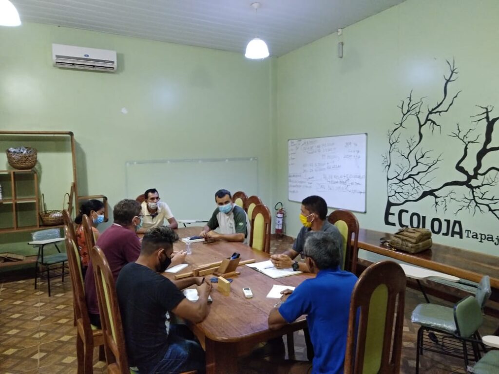 Após visita às comunidades, reunião com diretores da Coomflona e da Federação, um novo encontro de planejamento foi realizado com participação da gestão da Floresta Nacional do Tapajós, Federação da Flona, representantes das comunidades e do Projeto Saúde e Alegria. Na ocasião foram definidas as estratégias de organização da base de apoio Terra Rica do quilômetro 67, para utilizá-lo no armazenamento de sementes para posterior envio à Natura.