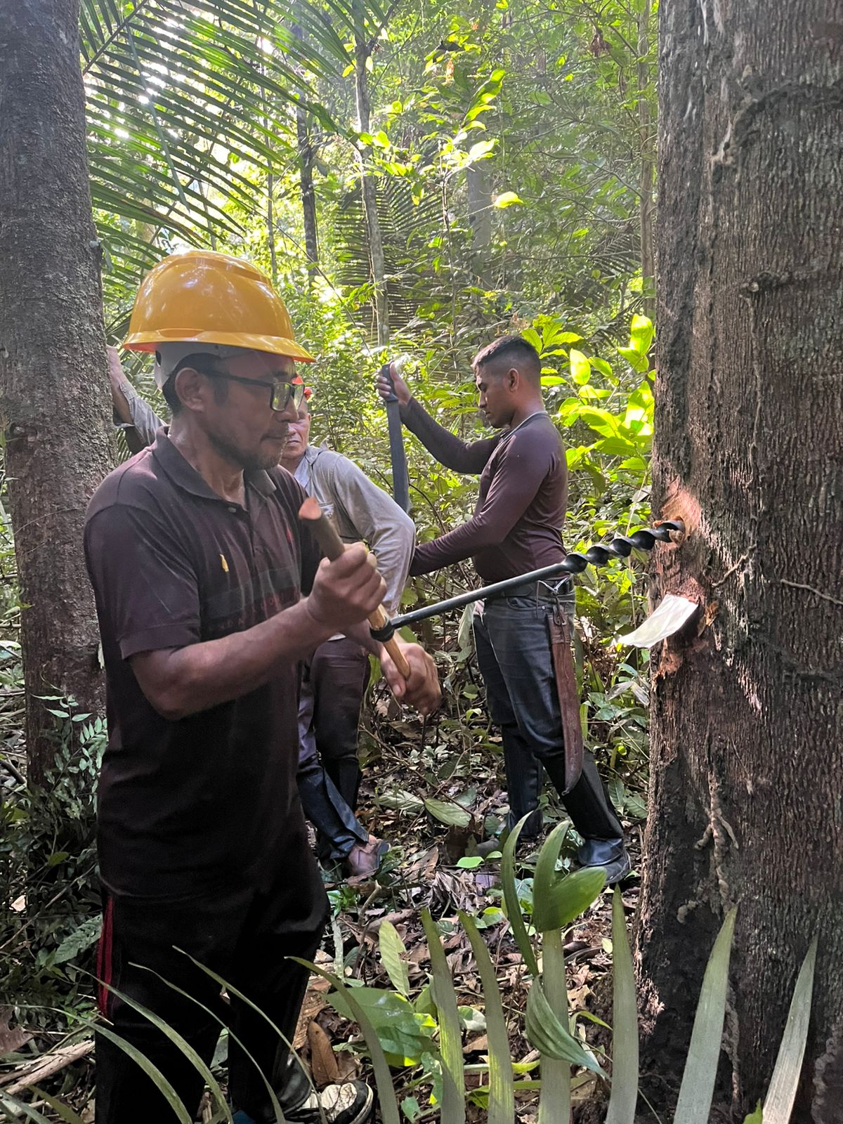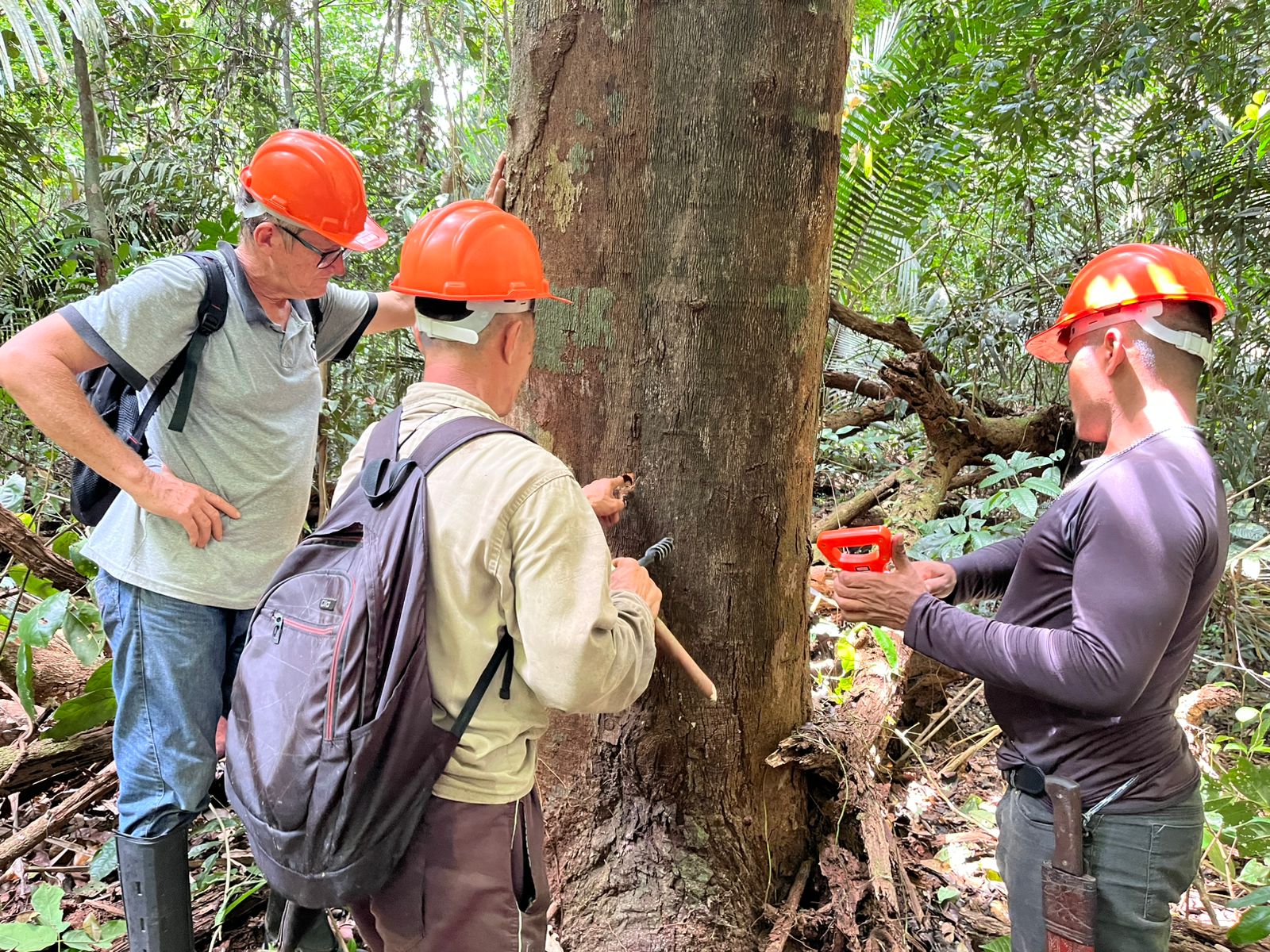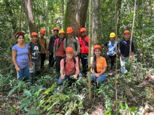 Equipe técnica do Programa Economia da Floresta do Projeto Saúde e Alegria, consultores e Acosper realizaram atividades de zoneamento para identificar árvores com potencial produtivo