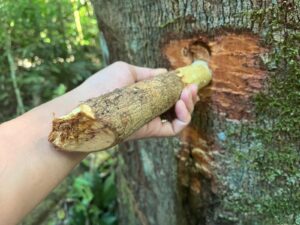 Além da rastreabilidade, a atividade incorpora ferramentas de monitoramento que fortalecem a autonomia das comunidades no manejo dos recursos. “Uma das etapas muito importantes é a utilização do GPS. A capacitação no uso desse equipamento vai servir não só para o mapeamento da copaíba, mas também para o monitoramento do território indígena aqui na Aldeia de Takuara”, destacou Laura.