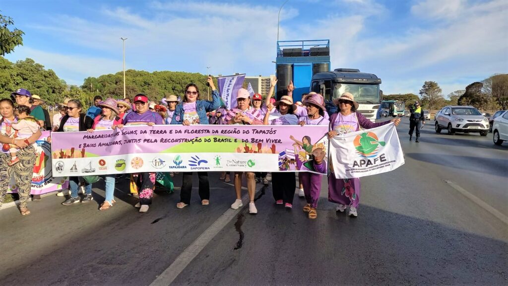 A delegação do Tapajós participou da Marcha das Margaridas em Brasília, representada por dezesseis mulheres das organizações FEAGLE, STTR, AMTR, Turiarte, Tapajoara, Cita, FOQS e Mopebam. Na terça-feira (15), a comitiva foi recebida pela Secretaria Nacional dos Povos e Comunidades Tradicionais do Ministério do Meio Ambiente (MMA), quando foi entregue o documento com solicitações das mulheres extrativistas, pescadoras, indígenas, agricultoras, quilombolas e artesãs da região do Tapajós e baixo Amazonas.