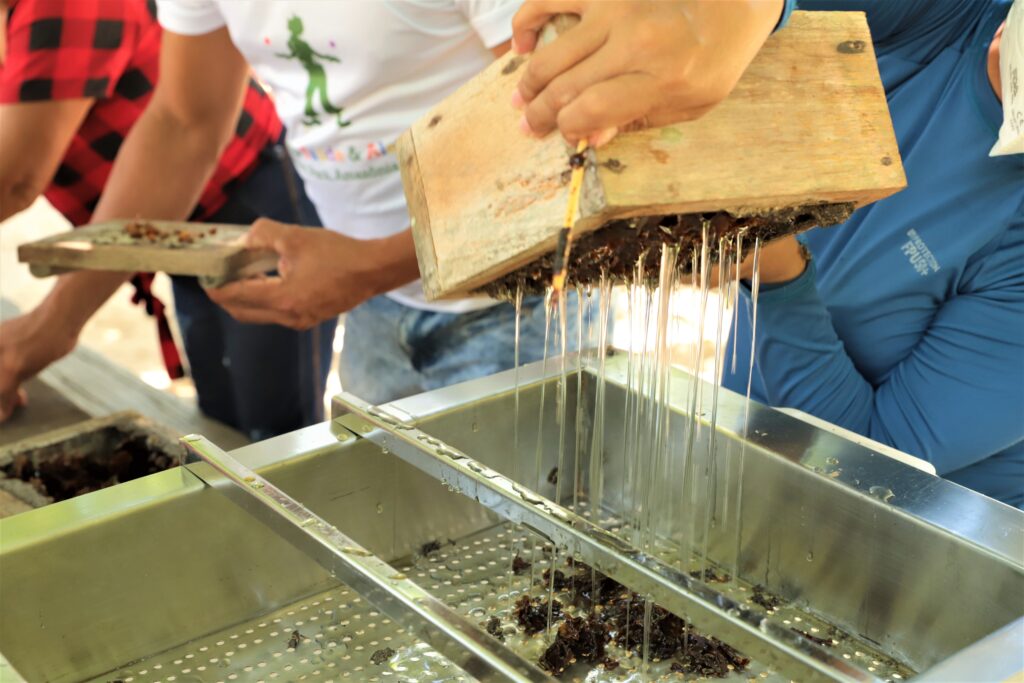 O desafio é organizar um sistema de produção que viabilize a comercialização do mel de abelha nativa no mercado formal, de maneira compatível com as características culturais, ambientais e logísticas da região. A proposta é construir coletivamente tecnologias e técnicas para a extração do mel, promovendo a segurança alimentar, conforme os padrões da vigilância.