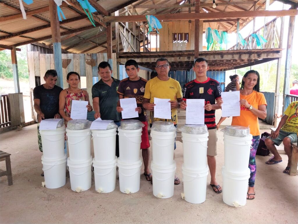 Além do curso teórico/prático, os participantes receberam 65 kits de manejador, que incluem balde para armazenamento do mel, balde decantador e peneira em aço inox através do apoio da Fundação KAS e Good Energies. Os beneficiários são integrantes da Cooperativa Acosper que se prepara para o desafio de implantar a Agroindústria do Mel em Santarém. “Eles estarão fornecendo mel de qualidade ao Ecocentro que viabilizará o comércio do mel das abelhas sem ferrão dentro e fora da região”, explica o coordenador de ATER do PSA, Marcio Santos.