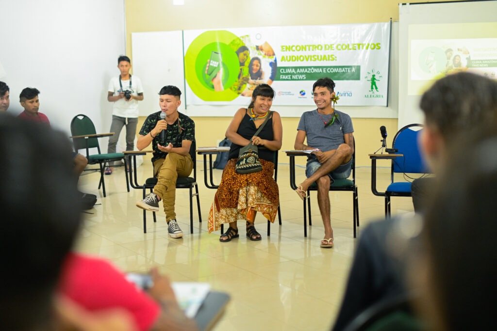 O ‘Encontro de coletivos audiovisuais: clima, Amazônia e desinformação’ buscou refletir e capacitar os participantes para a atuação na Amazônia. O evento apresentou o contexto atual dos coletivos audiovisuais na Região do Tapajós com a participação da Internews que destacou a pesquisa de atualização do Ecossistema de Informação. Também foi promovida durante o encontro, uma escuta ativa sobre o ecossistema de informação nas comunidades, evidenciando como as notícias são consumidas, as ações de combate à desinformação nos territórios e iniciativas que poderão ajudar no combate à prática.
