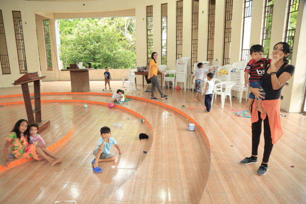Para dar tranquilidade, segurança e garantir a participação das mães, o Núcleo de Educomunicação se juntou à equipe do Projeto Mulheres Empreendedoras e promoveu ações com crianças de até oito anos de idade. “Enquanto as mães estão no curso, a gente desenvolve atividades lúdico/pedagógicas com as crianças de um a oito anos. A gente traz desde o sensorial, tradicionais de cantiga de roda, pique-esconde, jogo do taco. A gente aproveita esse ambiente circular para explorar a parte psicomotora da criança”, explicou a pedagoga do PSA, Adma Guimarães.