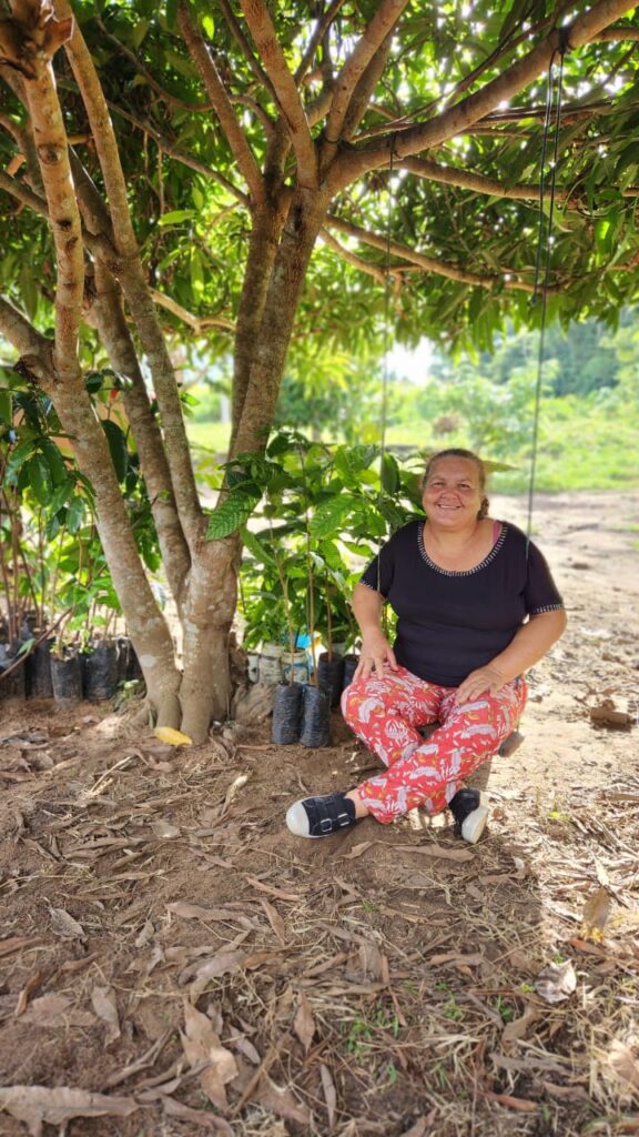 Em 2019, a pandemia do Coronavírus acabou impactando não somente na família de Selma, que perdeu o marido, mas também na própria associação em que ela ocupava o posto de presidente. Foi um período de perdas, com o sítio quase acabado e as associadas distantes, a agricultora precisou se reinventar. Após o luto, ela focou na reestruturação da AMABELA, associando as filhas e novas mulheres do assentamento, tudo para fortalecer a iniciativa, que em 2022 passou a integrar um Projeto de Restauração de Sistemas Agroflorestais apoiado pelo Instituto de Pesquisas da Amazônia e a Conservação Internacional – Brasil. Hoje as mudas produzidas nos viveiros das ‘amas’ estão espalhadas em vários quintais.