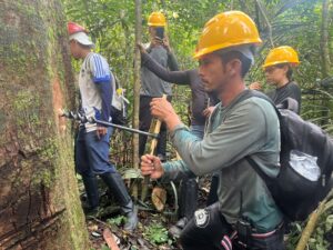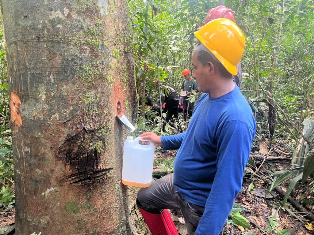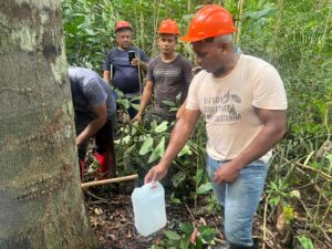 A capacitação técnica se soma ao trabalho de mapeamento e georreferenciamento das árvores de copaíba nas comunidades, destacou a engenheira florestal do PSA, Laura Lobato: “Nosso papel aqui também é mapear, deixar tudo georreferenciado, como parte da assistência técnica nessa cadeia”.