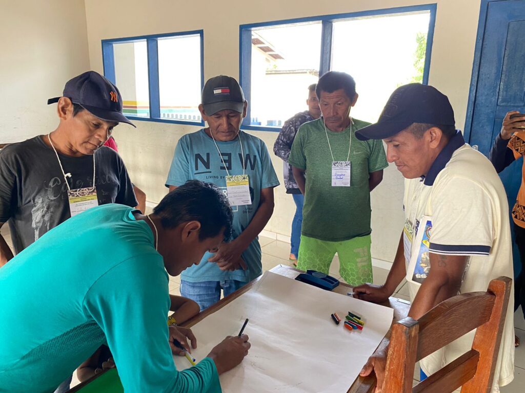 “Foi muito boa a oficina. A gente agradece a oportunidade que o Saúde e Alegria traz pra nossa organização pra que nós possamos ter a nossa força. A gente tem certeza que nós estamos levando esse projeto para nossa sustentabilidade, pra conservar o nosso território e a natureza”, conta o coordenador do coletivo de Castanha Munduruku Poy, João de Deus Kaba Munduruku.