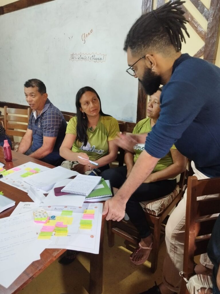 O Instituto Conexões Sustentáveis (Conexsus) e o Projeto Saúde e Alegria se uniram para promover um ciclo de modelagem de negócios de empreendimentos comunitários da região do baixo Tapajós.  No período de 20 a 28 de março, lideranças participaram das primeiras oficinas de modelagem de processos de negócios, uma ferramenta importante para entender as etapas e ativar os fluxos de trabalho. As oficinas fazem parte do projeto da Conexsus: Conexões Ecoforte que envolve diversas organizações, dentre elas algumas que estão na estratégia do Projeto Mulheres Empreendedoras da Floresta.