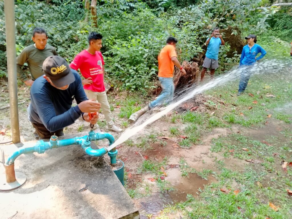 - Aldeia Waró Baxé Watpu: Perfuração de poço com 55 metros, instalação de bomba submersa, rede de distribuição, sistema de energia solar para bombeamento e elevado de madeira com reservatório de 5mil litros;