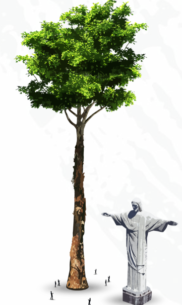 O grandioso angelim-vermelho tem 88,5 metros de altura e 9,9 metros de circunferência. Para chegar até ele são necessários 15 dias percorrendo cerca de 400 quilômetros de rios cheios de corredeiras e mais 40 quilômetros a pé pela mata densa. Mas, nem assim o angelim-vermelho está a salvo da escalada do desmatamento. A Flota foi a quinta unidade de conservação mais desmatada de toda a Amazônia em outubro, dado mais recente levantado pelo Imazon.