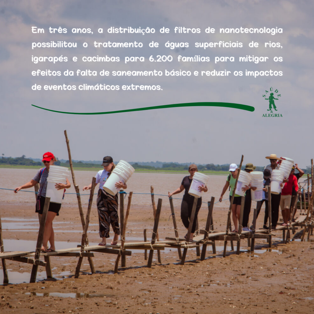 Em três anos, a distribuição de filtros de nanotecnologia possibilitou o tratamento de águas superficiais de rios, igarapés e cacimbas para aproximadamente 6.200 famílias para mitigar os efeitos da falta de saneamento básico na região e reduzir os impactos de eventos climáticos extremos.