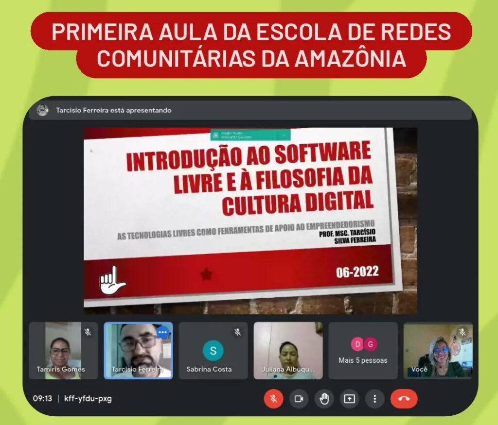 The use of free software allows the user to modify and redistribute computer programs or cell phone applications as needed. One of the basic principles of this culture is to allow the internet user to be free to reconfigure it according to his or her needs. The theme was selected by the School of Community Networks of the Amazon, after immersion in the seven territories participating in the training. Last Saturday (June 25th), twenty-one students participated in the first meeting, which was taught by professor Tarcísio Ferreira, an expert in computer projects and digital culture.