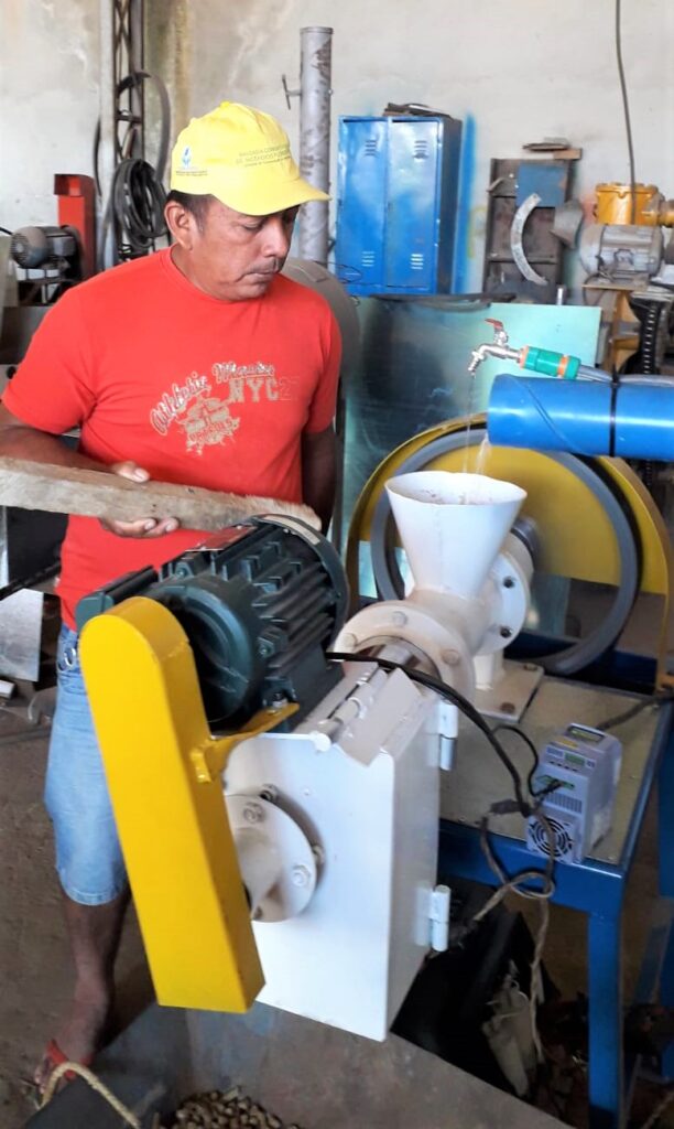 Além da capacitação, os piscicultores foram até o município buscar a extrusora (máquina) que tem capacidade de produzir 150 quilos de ração por hora. “Uma das nossas dificuldades era não ter a máquina de fazer ração. Buscar essa extrusora é a realização de um sonho porque eu via o esforço que os piscicultores faziam. Com essa máquina isso está resolvido” – comemorou a jovem Elizana dos Santos, integrante do grupo.