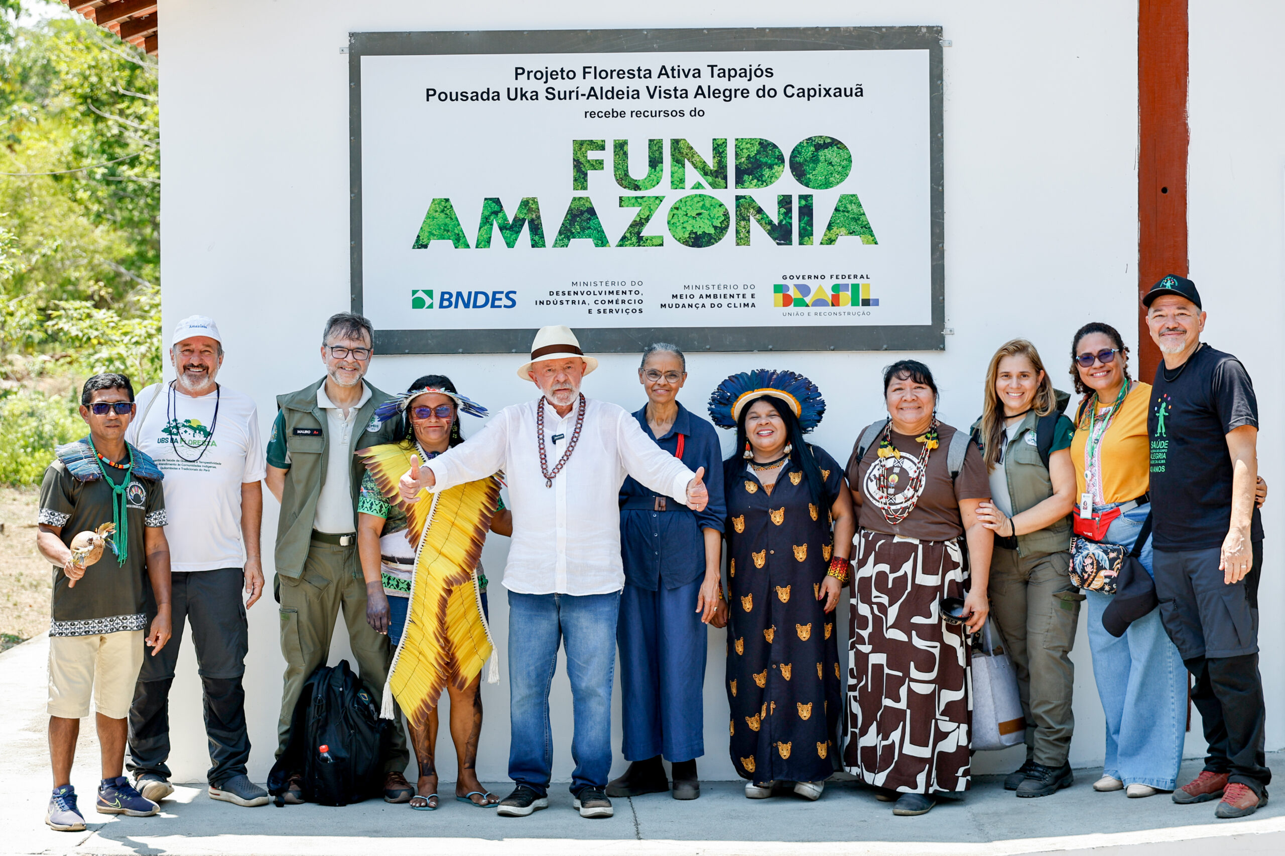 O presidente Luiz Inácio Lula da Silva visitou neste domingo (2) comunidades indígenas e ribeirinhas da região do Tapajós, no oeste do Pará, acompanhado também da primeira-dama Janja, as ministras Sonia Guajajara (Povos Indígenas) e Marina Silva (Meio Ambiente e Mudança do Clima), da presidente da Funai, Joenia Wapichana, e do ICMBIO, Mauro Pires.
