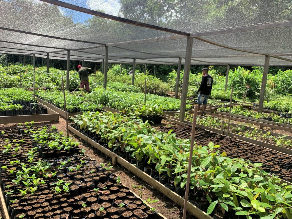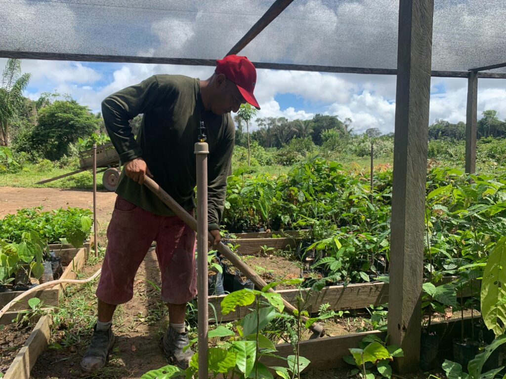 Vanderson Magno, jovem liderança na comunidade Nova Vista, reforça que o apoio tem garantido melhor qualidade para a produção. “Era muito difícil antigamente. Aqui nós trabalhamos com espécies de cacau, cupuaçu, andiroba e outras mudas e a gente quer trabalhar com todas para ter melhoria de vida e focar nas que podem nos dar renda”.