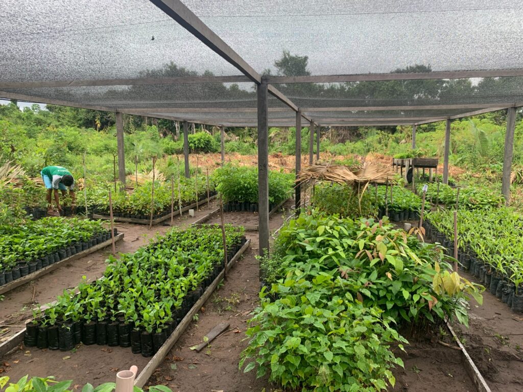 O Programa Floresta Ativa do Projeto Saúde e Alegria tem dentre suas estratégias a implementação de Assistência Técnica Regular (ATER) em Sistemas Agroflorestais (SAFs). Atualmente são assessorados cento e onze (111) produtores em três regiões: Resex Tapajós-Arapiuns, Floresta Nacional do Tapajós e PAE Lago Grande. Em parceria com a Acosper, o PSA implantou oito (8) viveiros florestais nas comunidades Nova Vista do Arapiuns, Carão, São Francisco, Carariacá, Surucuá, Aldeia São Pedro, Aldeia Vista Alegre do Capixauã e Jaguarari. “Dois deles já estão regularizados no Ministério da Agricultura, Pecuária e Abastecimento (MAPA) e os demais estão em processo de regularização”, explica a engenheira florestal do PSA, Diane Ribeiro. Os viveiros recebem cuidados para que possam produzir com qualidade e de forma orgânica – sem uso de agrotóxicos. Nos viveiros são manejadas espécies florestais e frutíferas: cumaru, andiroba, açaí, café, cupuaçu, cacau urucum, acerola. São planejados cultivos com potencial de geração de renda para que os produtores possam agregar renda e alavancar o comércio local, “além de servirem para a restauração florestal. Nesses viveiros as mudas vão ser trabalhadas na forma de SAFS que é o consórcio de espécies florestais com frutíferas e culturas anuais”, ressalta Ribeiro, responsável pelo trabalho dos SAFS.