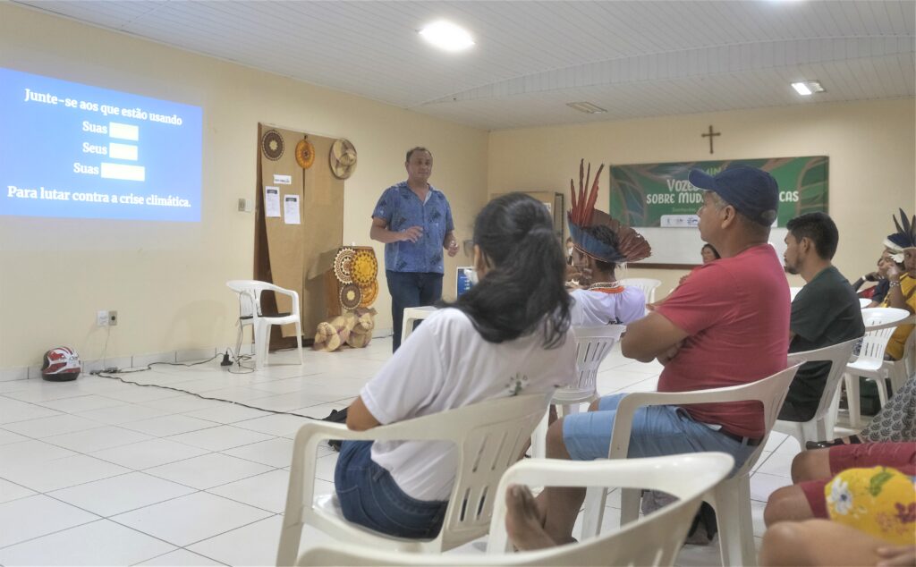 Edilson Silveira, do Sindicato dos Trabalhadores e Trabalhadoras Rurais de Santarém, apontou ações predatórias que contribuem para as mudanças climáticas: “A gente vive um contexto da disputa do nosso território que está relacionado a nossa floresta, ao nosso rio, aos nossos igarapés. Se a gente não se alertar de falar com a juventude, a gente vai perder esse nosso território”.