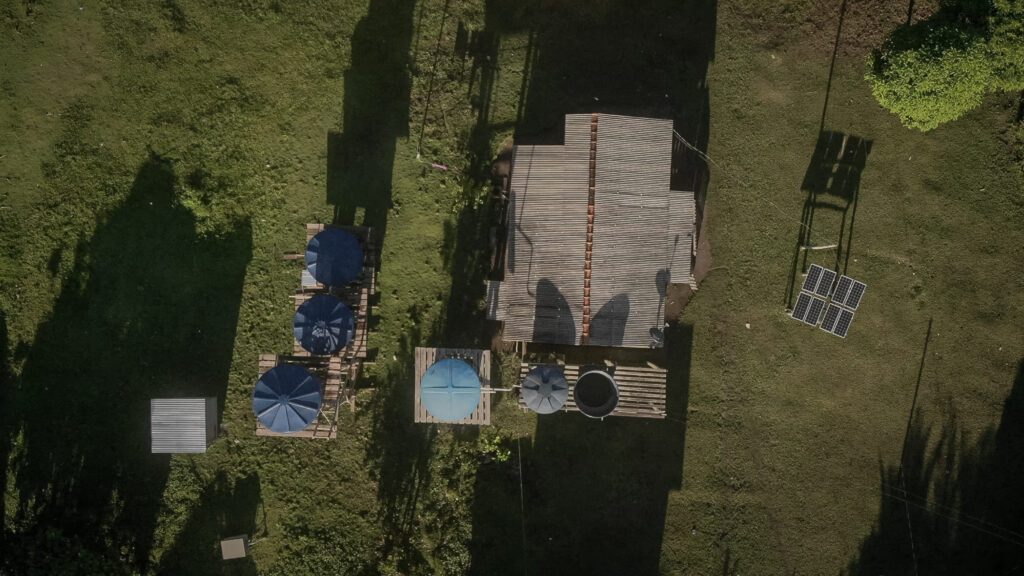 Aldeia Dace Watpu com banheiros construídos e sistemas de abastecimento em pleno funcionamento. Foto: Daniel Govino.