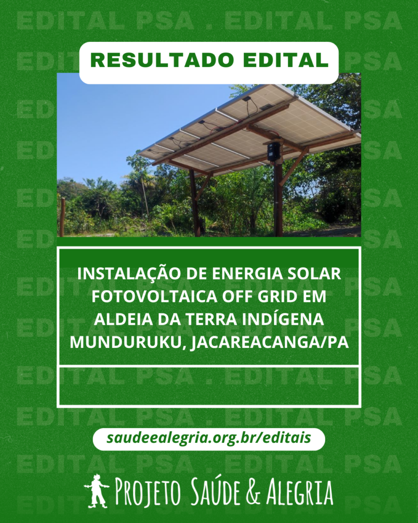 Resultado edital para instalação de energia solar fotovoltaica off grid em aldeia da Terra Indígena Munduruku, Jacareacanga/PA