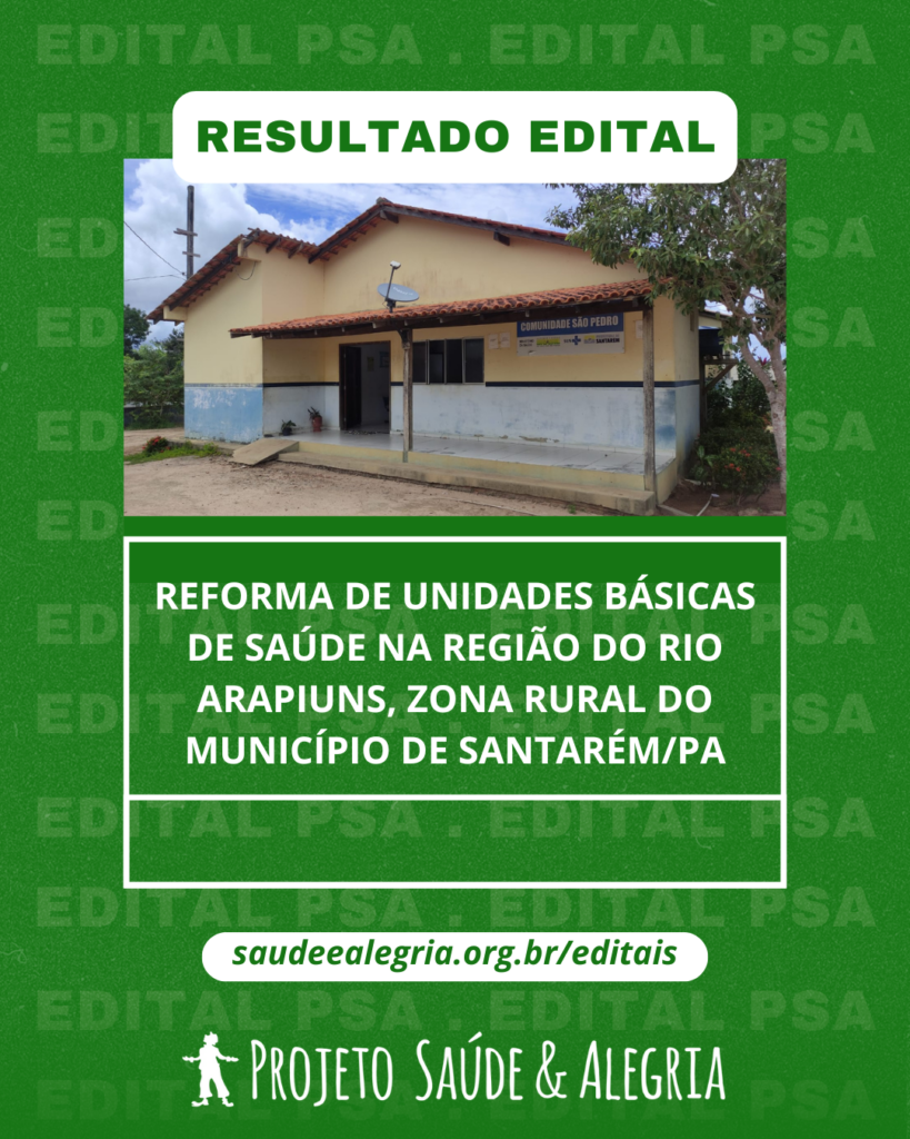 Resultado edital para reforma de unidades básicas de saúde na região do Rio Arapiuns, zona rural do município de Santarém/PA