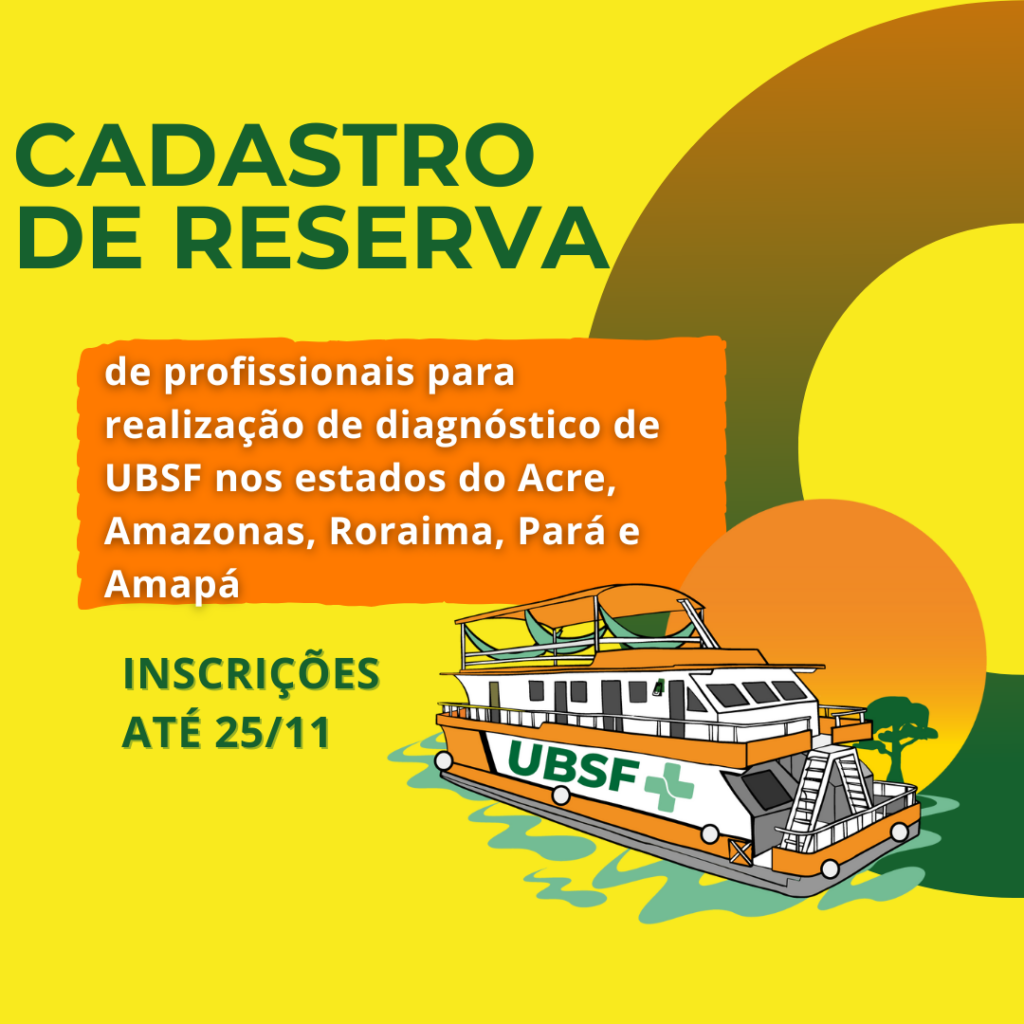 Edital para cadastro de reserva de profissionais para realização de diagnóstico de UBSF nos estados do Acre, Amazonas, Roraima, Pará e Amapá