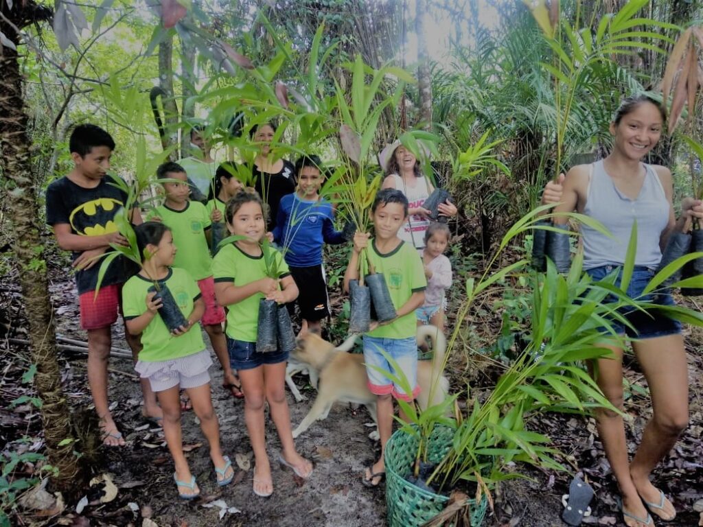 Mudas nativas são plantadas em ação ambiental na comunidade Coroca, PAE Lago Grande