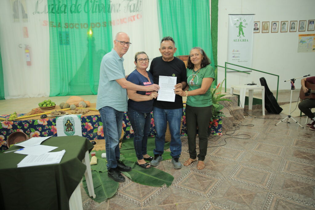 Com a presença de representantes do Ministério do Desenvolvimento Agrário e Agricultura Familiar (MDA) e do Meio Ambiente e Mudança do Clima (MMA), 73 mulheres e jovens foram certificados no Programa de Educação do Cooperativismo e Associativismo da Agricultura Familiar Agroextrativista (PECAAFA). Após sete encontros ao longo de um ano e meio, o encerramento com duração de quatro dias, marcou o ciclo de capacitações, que incluiu organização de produção, gestão, sustentabilidade,  aspectos de governança, inclusão e empoderamento de jovens e mulheres. “Em 2024 consideramos que é fundamental fazer uma memorização e chamar órgãos governamentais que trabalham com esses aspectos para apoiar as organizações no que nós trabalhamos”, afirmou o assessor institucional da UNICAFES, Alcidir Zanco.
