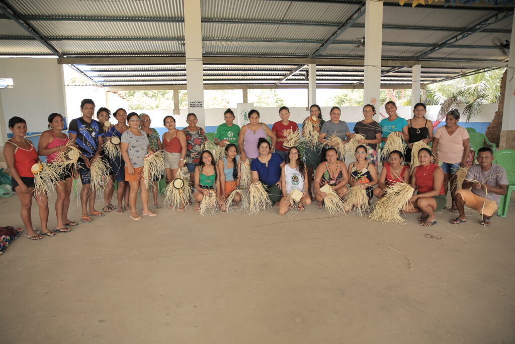 Com o aumento da demanda por produtos artesanais feitos a partir da palha de tucumã, a Cooperativa Turiarte que atua com turismo e artesanato de base comunitária, sentiu a necessidade de fortalecer trocas de saberes e aprimorar as técnicas da produção. A coordenadora de negócios comunitários e gênero do Projeto Saúde e Alegria Olívia Beatriz destacou que a proposta da oficina é ampliar as possibilidades de produção com foco na qualidade do acabamento: “Tem diversas mestras artesãs que estão aqui e que estão passando conhecimento do refinamento do artesanato da palha do tucumã”.