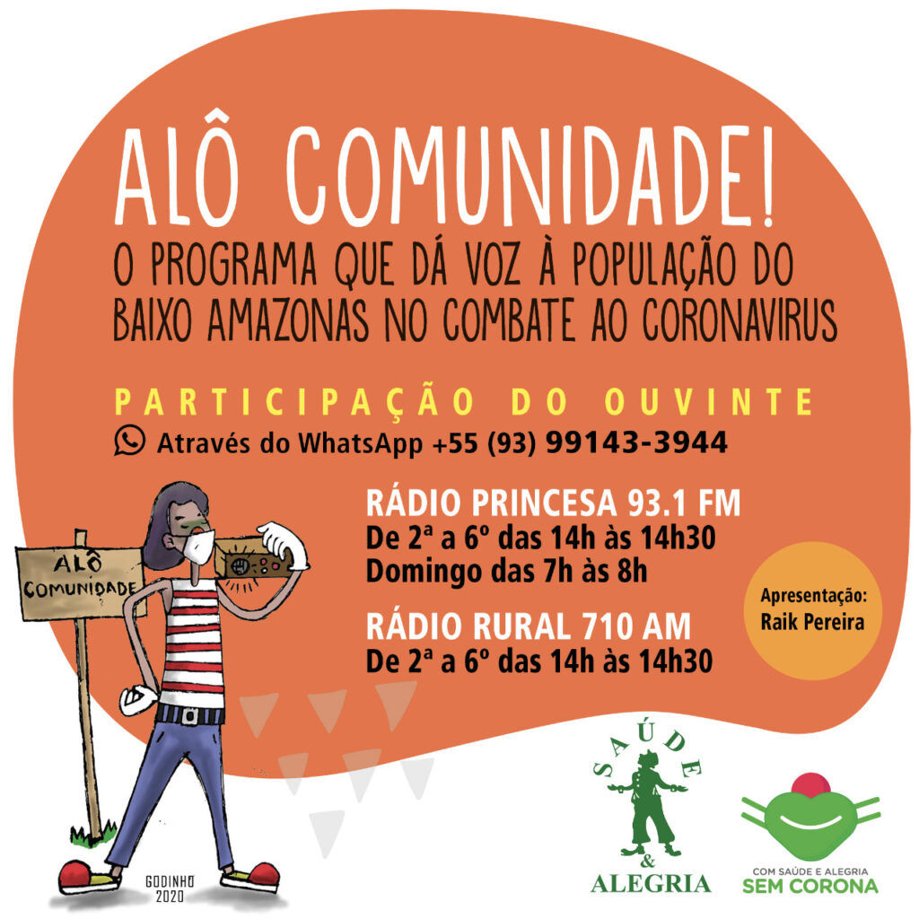 Com apresentações às 14h00 de domingo à sexta nas Rádios Rural de Santarém e Princesa Fm, o Programa Alô Comunidade está completando sete meses de operação. Idealizado pelo Projeto Saúde e Alegria para ser um instrumento de suporte às comunidades no período da pandemia, o programa foi planejado inicialmente para apoiar a campanha #Com Saúde e Alegria Sem corona, para levar informações das atividades realizadas pelo PSA e seus parceiros.