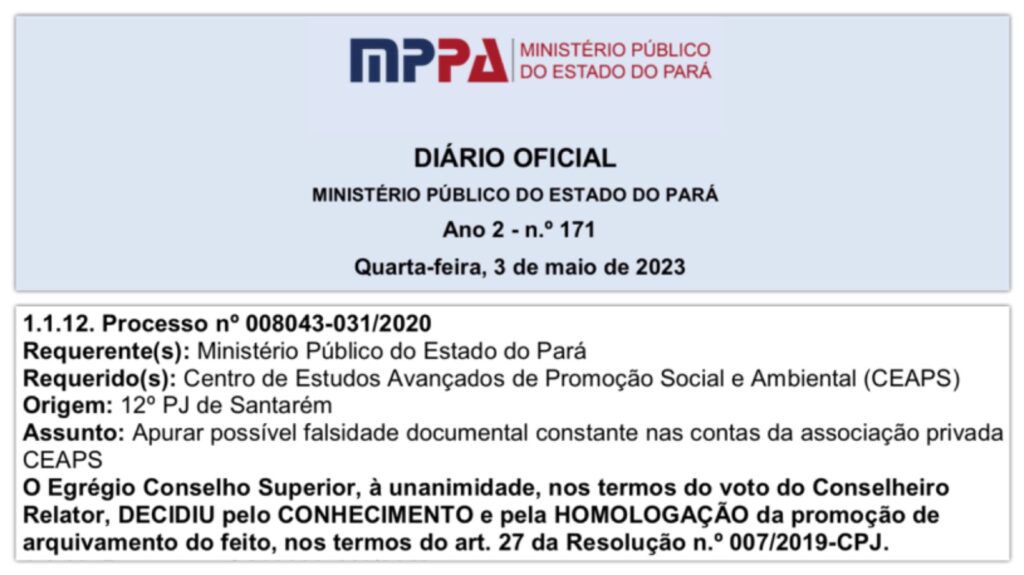 Foram cerca de três anos de suspeitas, ilações injustas e incabíveis para a boa imagem e credibilidade da Organização, desde o fatídico dia de 26 de novembro de 2019, quando o escritório do Projeto Saúde e Alegria em Santarém foi alvo de busca e apreensão de documentos e computadores pela Polícia Civil do Estado na operação Fogo do Sairé. Nesse mesmo dia, quatro brigadistas voluntários do Instituto Aquífero Alter do Chão foram presos, acusados sem provas, de terem provocado meses antes os incêndios na região em conluio com ONGs para fins de captação de recursos.
