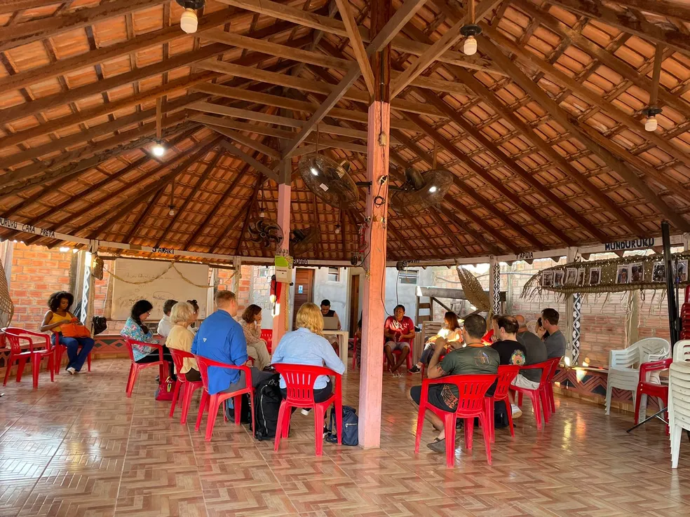 Lideranças indígenas do Conselho Indigena Tapajos Arapiuns – CITA receberam visita de diplomatas da União Europeia. Foto: G1 Santarém.