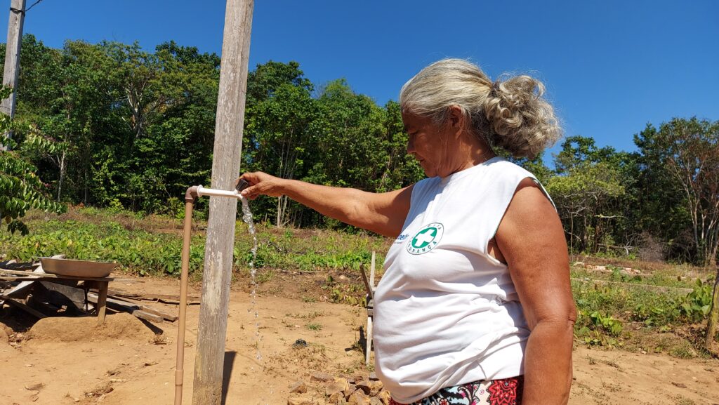 “Todas as famílias da comunidade foram beneficiadas. Antes a gente descia na margem do rio. A gente tinha que pegar água, trazer para nosso consumo em terra aqui em cima. Era muito dificultoso” – Maria da Conceição.